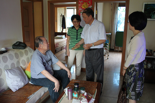 都俊卿老人今年已是88歲高齡,1943年2月參加革命工作,1944年6月加入中國共產黨。董成生一行來到老人家中,與老人促膝交談,仔細詢問老人的身體狀況和生活情況,代表公司向老人送去祝福與問候,感謝他為抗戰勝利做出的貢獻,囑咐老人要好好保重身體,安享晚年。